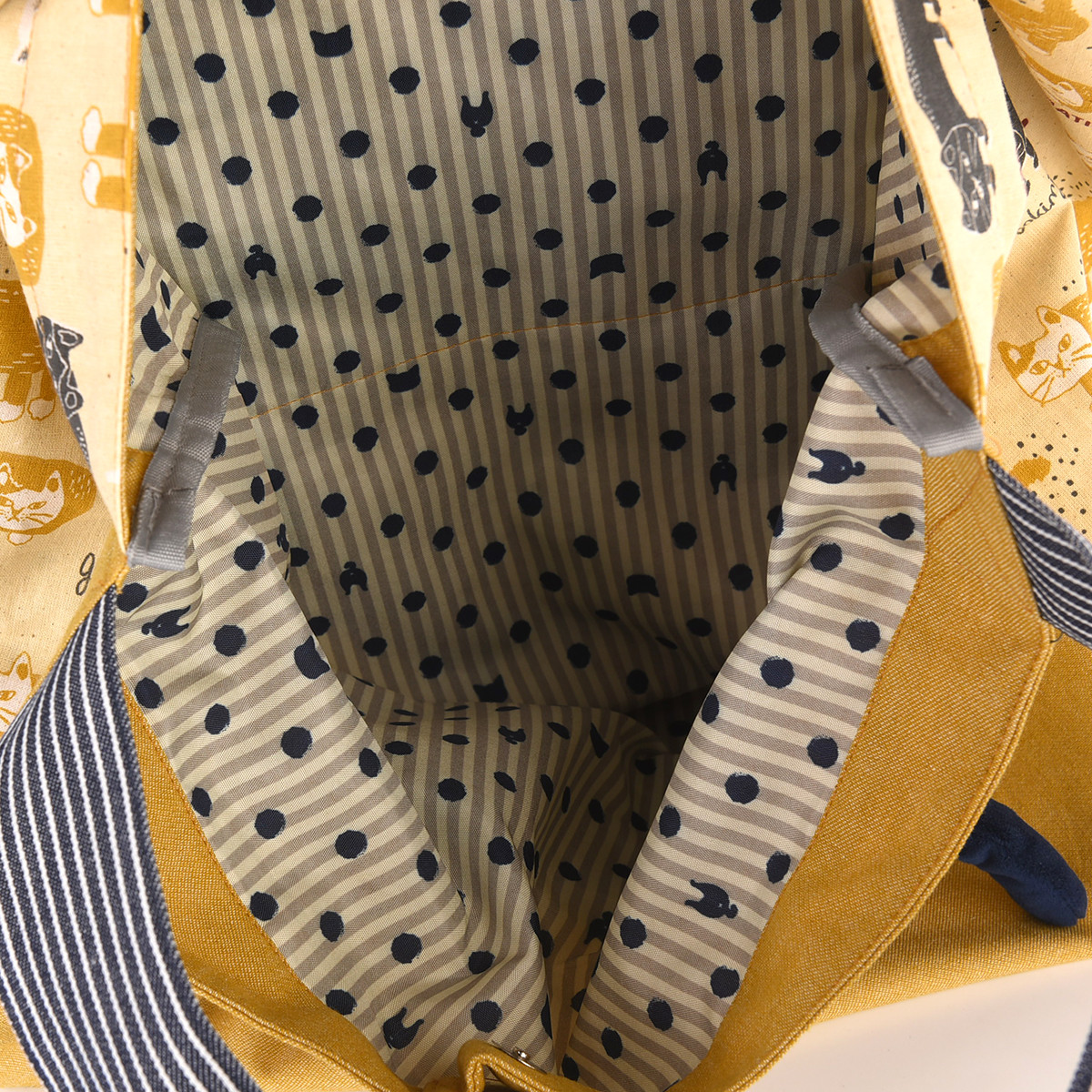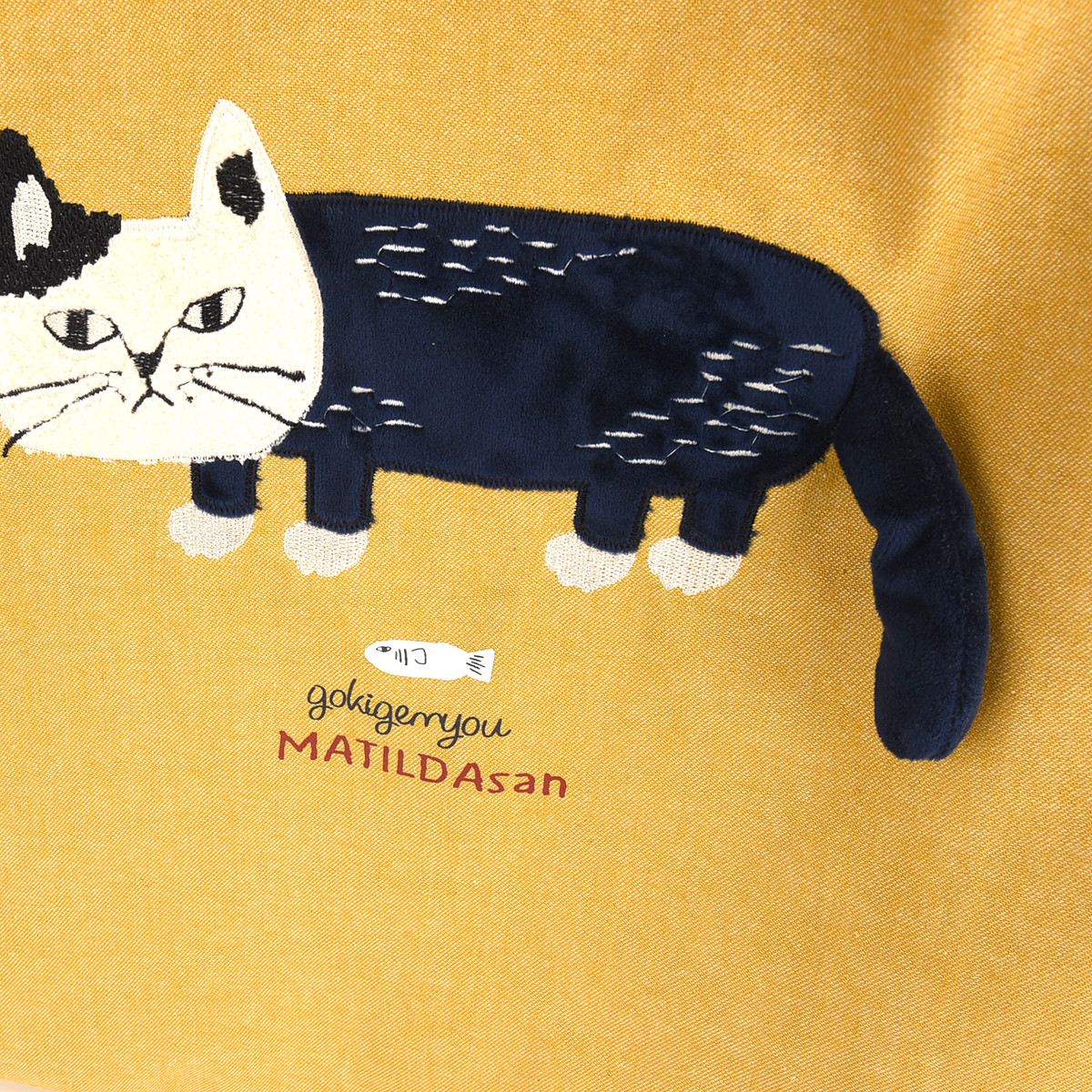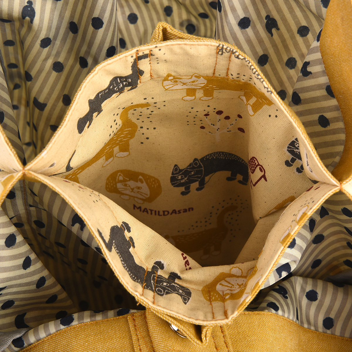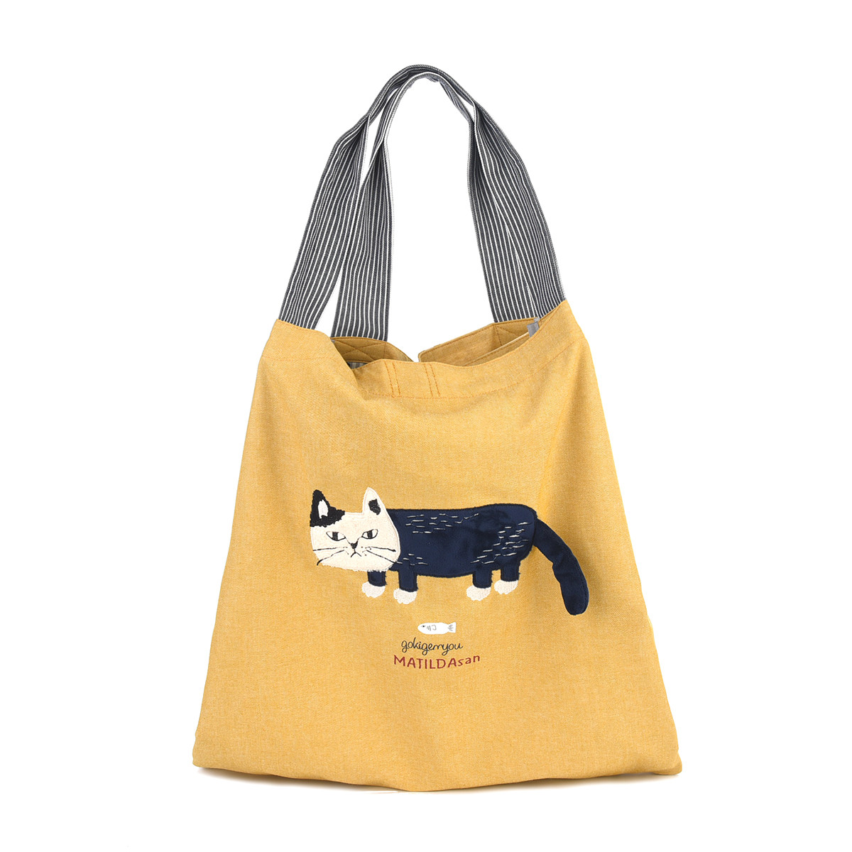 На передней части сумки красуется дизайнерская нашивка из 100% хлопка с изображением кошки Матильды из коллекции «MATILDASan». Этот яркий элемент сразу привлекает внимание. Задняя часть сумки украшена сплошным принтом с изображением этой милой кошки.