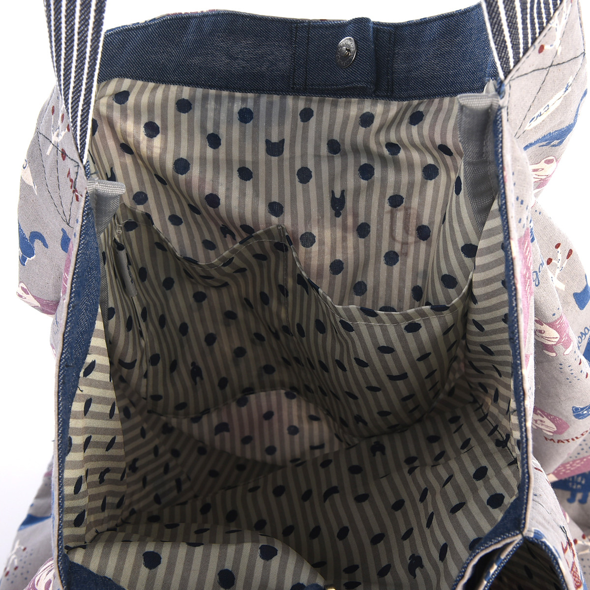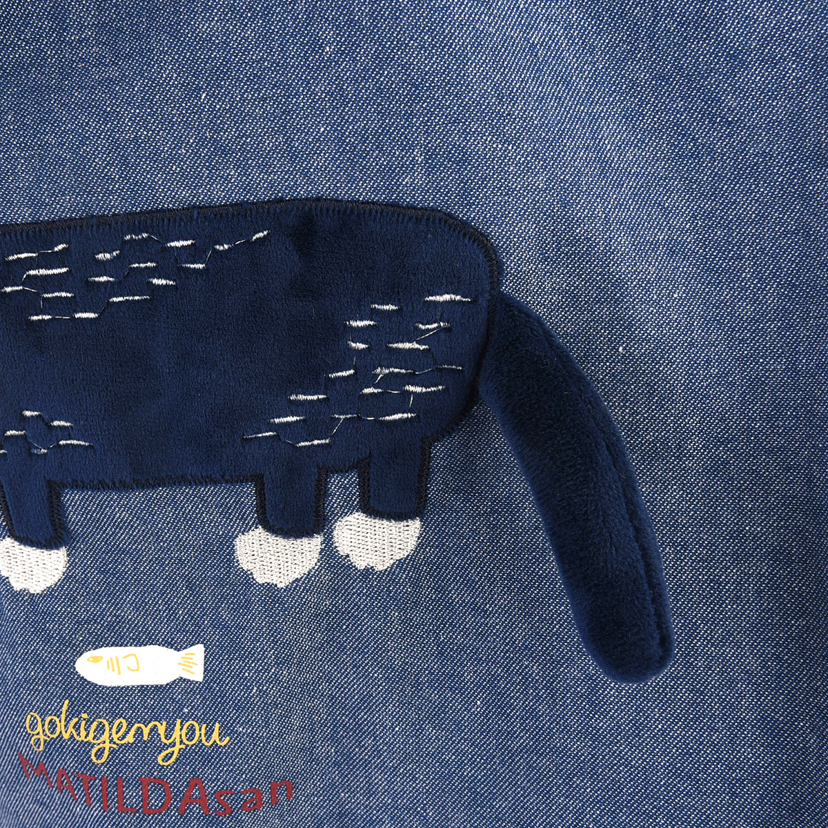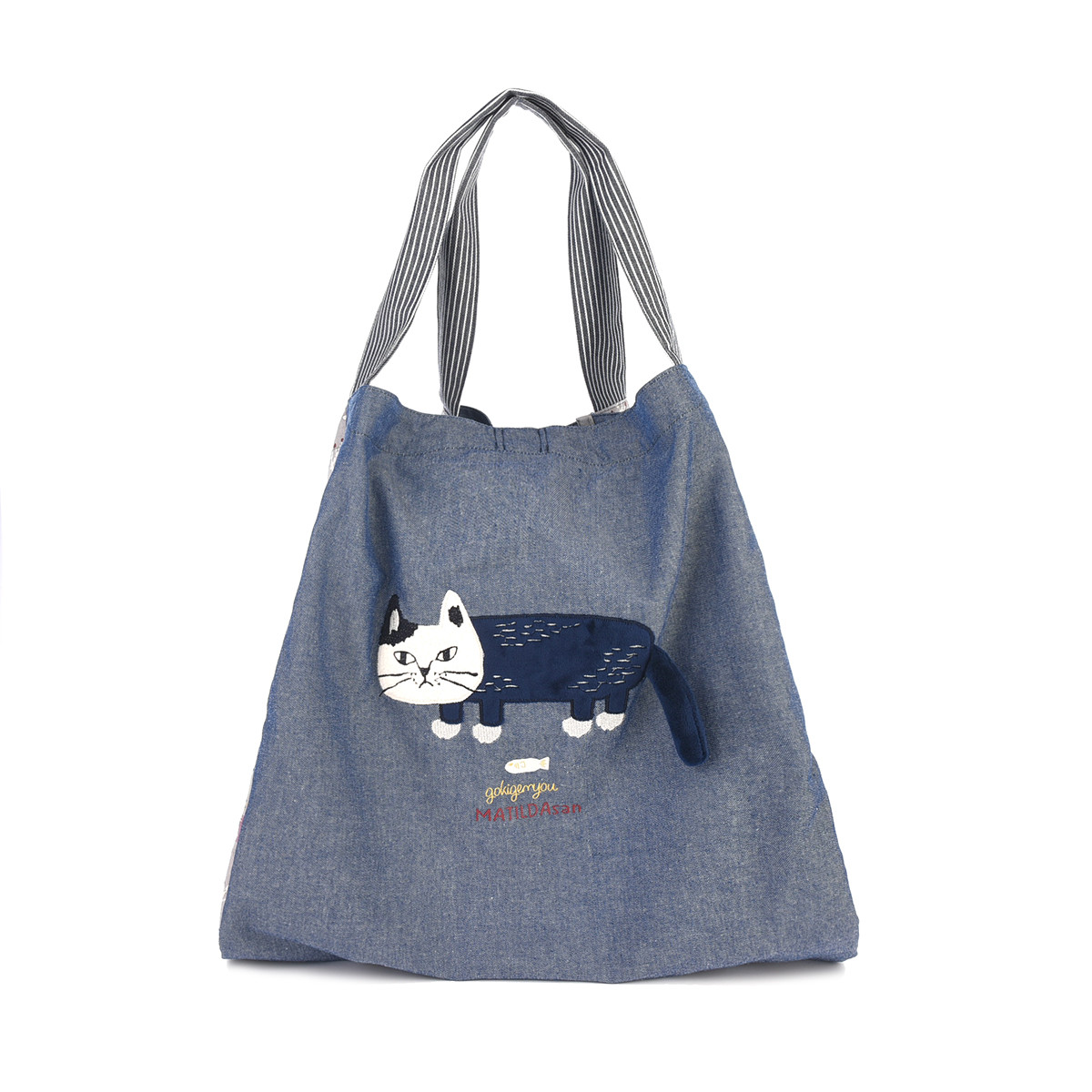 На передней части сумки красуется дизайнерская нашивка из 100% хлопка с изображением кошки Матильды из коллекции «MATILDASan». Этот яркий элемент сразу привлекает внимание. Задняя часть сумки украшена сплошным принтом с изображением этой милой кошки.