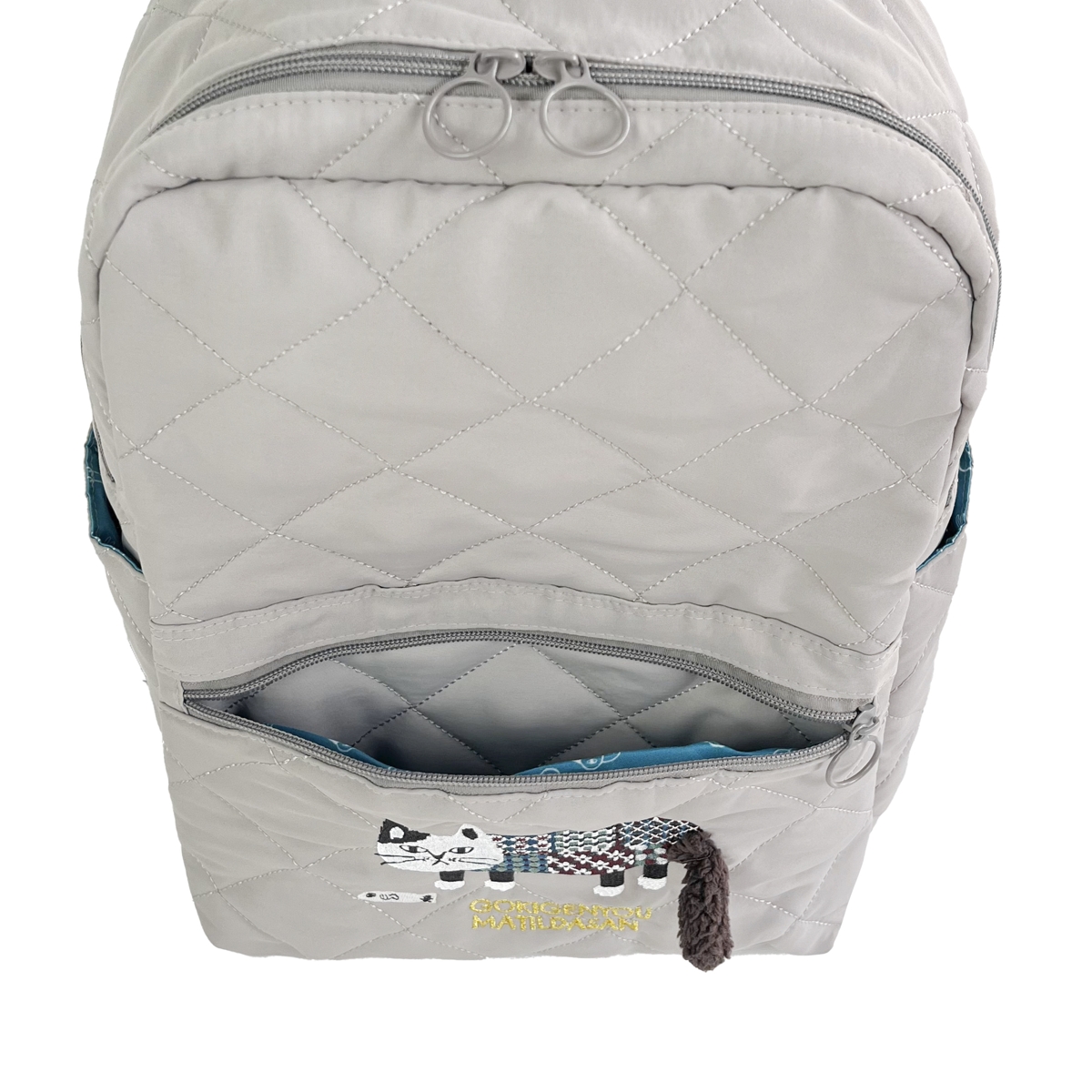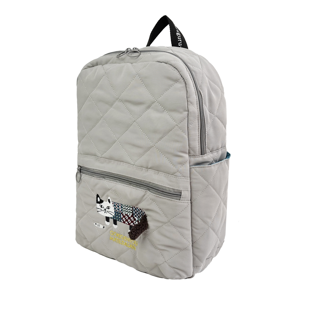 Стеганный рюкзак с кошкой "MATILDASan", серый, 25-8694-1, KUSUGURU